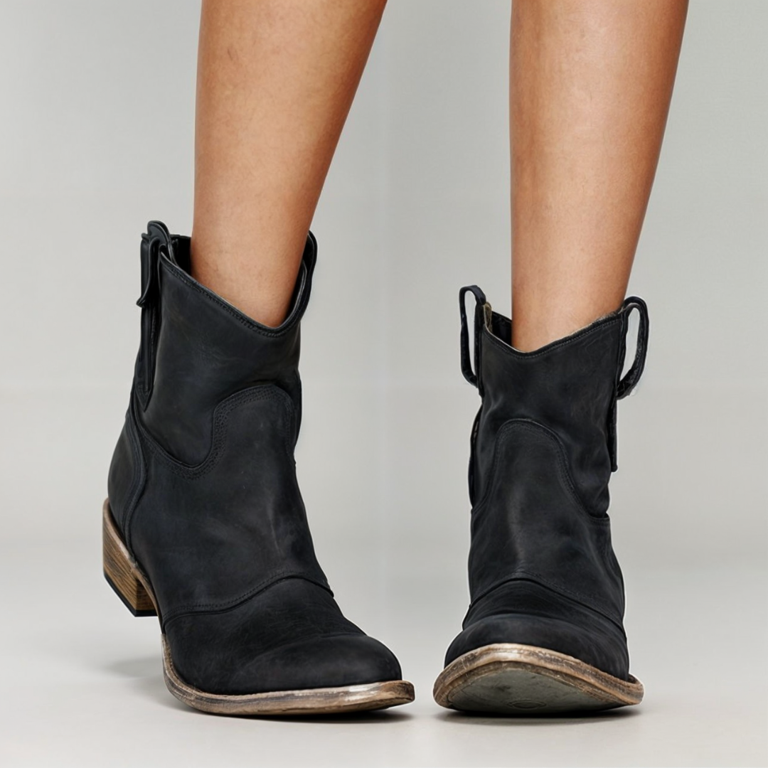 デスティニーのヴィンテージカウボーイアンクルブーツは、スタイリッシュなウェスタンデザインと現代的な快適さを兼ね備えています。